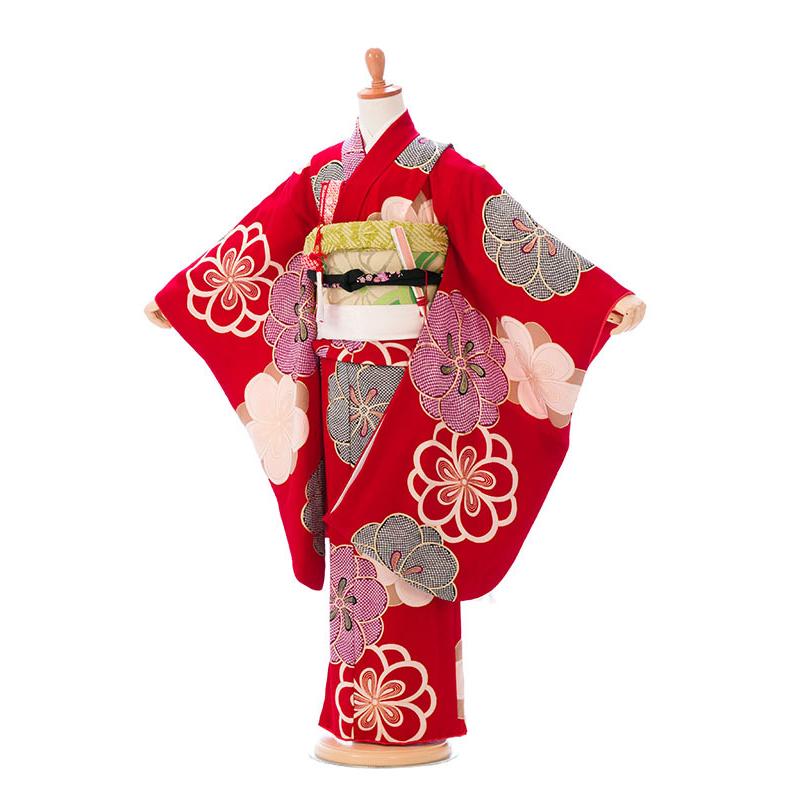 注目ブランド レンタル 七五三 7歳 女の子 往復 送料無料 きれいな赤の正絹地に絞り染め 花の刺繍が正統派 古典柄 レトロ 髪飾り フルセット 着物 七五三着物 七歳 753 衣装 足袋 着物レンタル 和装 小物 きもの レンタル着物 子供 帯 草履 着付け 女児 七五三
